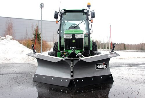 The Hilltip SnowStriker™ 1450-2600 VTR V-snowplows are designed with a heavy-duty box construction for hard winter conditions and fit compact tractors and loaders with a total weight of 1-5 tons.