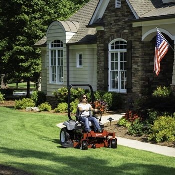 With a fully welded frame built from 2x3-inch frame tubes, the Radius design places major components including the engine, hydro drive system and fuel tank lower in the frame. The lower center of gravity and better mass centralization results in increased traction and stability, with improved handling.