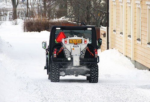 The Hilltip IceStriker™ sand and salt spreader in stainless steel is specially designed to meet the needs of UTVs and European light pickups. Thanks to the convenient size of the spreader, it’s compatible with most kinds of small machines, like utility vehicles, tool carriers, and mini-loaders. This stainless steel sand and salt spreader excels in parking lots, courtyards, walkways and pedestrian paths. With the Hilltip IceStriker™ spreader and its innovative control system, you can save money, minimise environmental impact and achieve superior results.