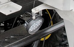 The controller lets you customize your spreading session according to your current situation. Automatic GPS speed control adjusts the amount of spreading material (g/m2) according to your vehicle speed, while manual mode lets you insert a fixed auger speed. The controller additionally collects and saves essential data to an USB memory, allowing you to generate spreading reports. The controller also makes it easy to turn on functions, like vibrator, beacon and work light, from inside the cabin.