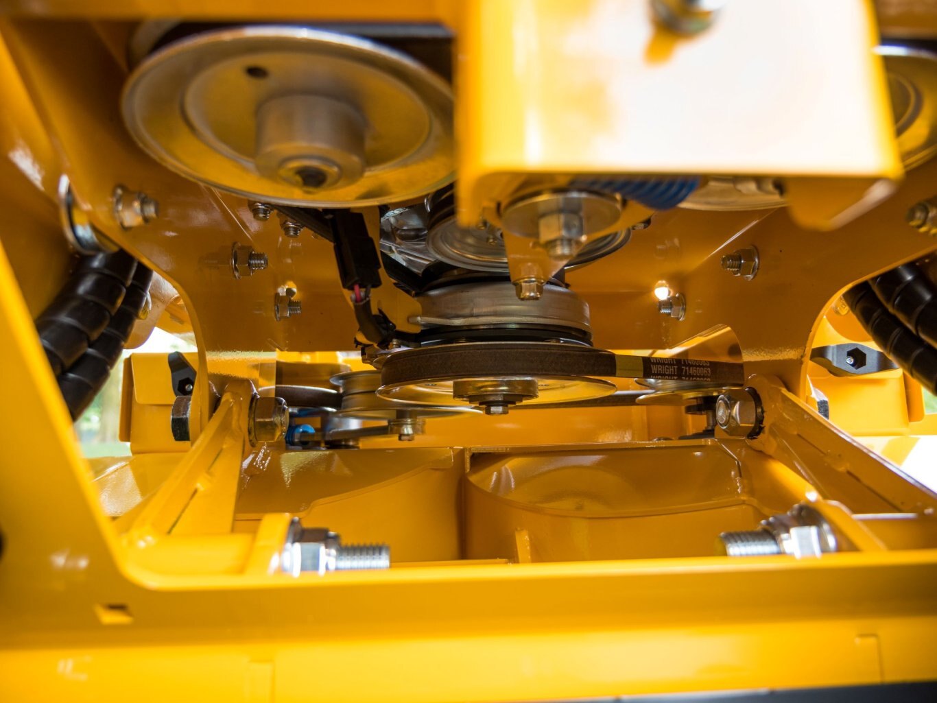 Leveling the deck is critical for an excellent cut. In most cases, the front of the deck should be ¼''lower than the back of the deck. This allows the grass to be clean cut once rather than bruised by the mower blade hitting the grass blade many times. All floating deck Wright mowers are equipped with either a bolt-type adjustment or a pivoting adjuster making it easy to set your deck to the correct height and pitch to match the your tire wear or preferred tire pressure.